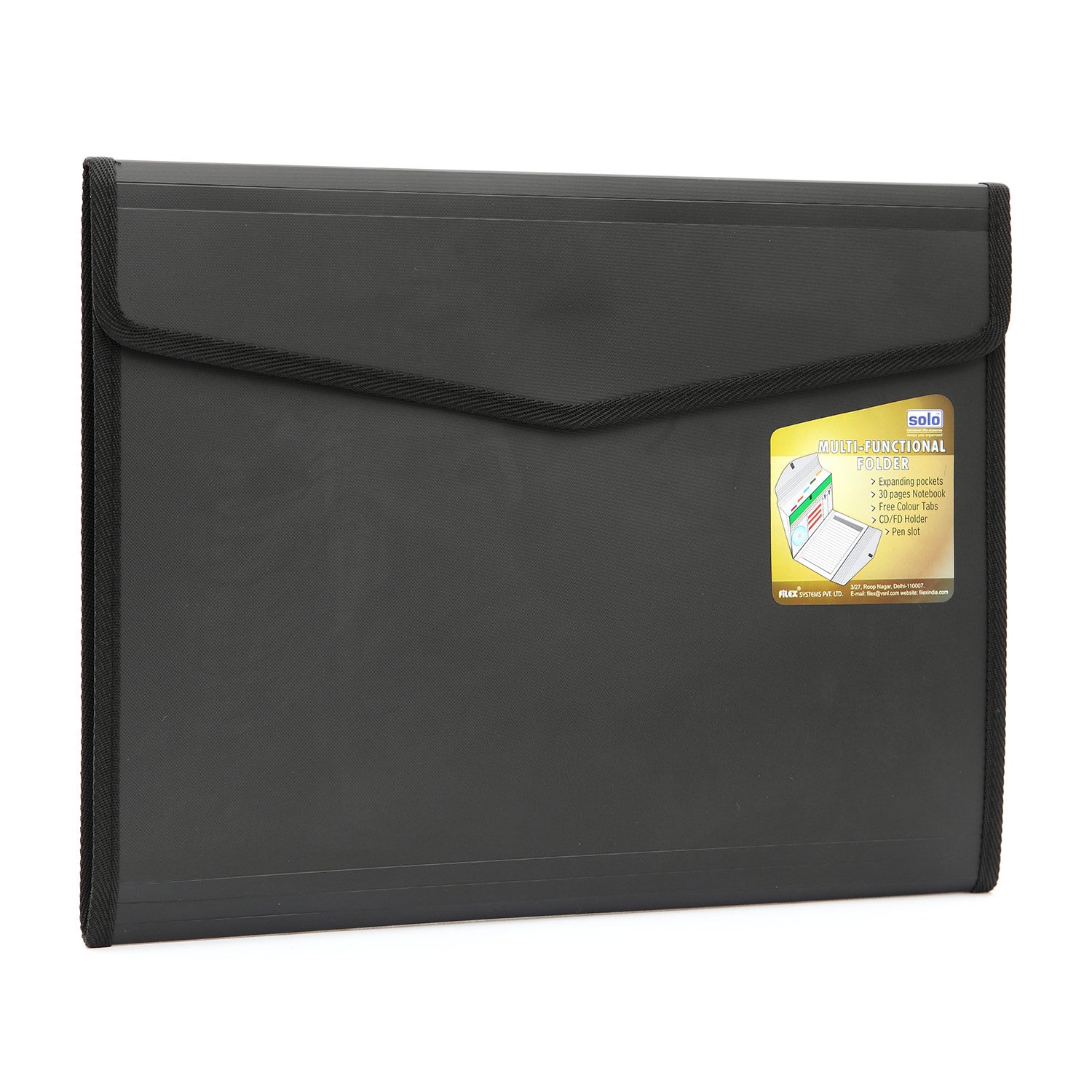 The Solo Conference File is a?Compatible A4 Size?File with?6 Inner Pockets?for systematic and categorized storage of all your important papers and documents. This Solo File is a Classic Personal Portfolio for Executives and comes equipped with a Notepad and a Pen Slot, which will help you make notes during meetings. Colour index tabs make identification easier and the Flap Closure keeps the items stored inside intact. Other features include CD Holder and a Business Card Holder and a Zip Closure for Extra Protection.?Net pocket provides an?extra storage facility in this Solo Conference File. The?Matte Texture?makes it look attractive and serves as an ideal product for?Corporate Gifting.