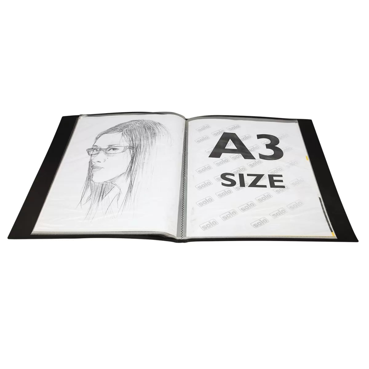 Walk into your office by holding the solo display file and completing your professional and classy office look. The solo display file looks attractive and is made to be A3 size thus proving to be useful for the storage of designs, sketches, flow charts, building plans, photographs, etc. the insides of this solo display file boast 20 clear view pockets of a durable thickness, which have the capacity of holding 6 sheets each. The polycover thickness of this solo display file is made to be such that it can hold up to 100 sheets inside. The embossed surface of the pockets traps air and thus prevents the prints from sticking to the plastic. The anti-static agents further enhance the convenience and ensure non-stick properties. The pockets of this Solo Display File are made to be extra thick for increased durability and strength.