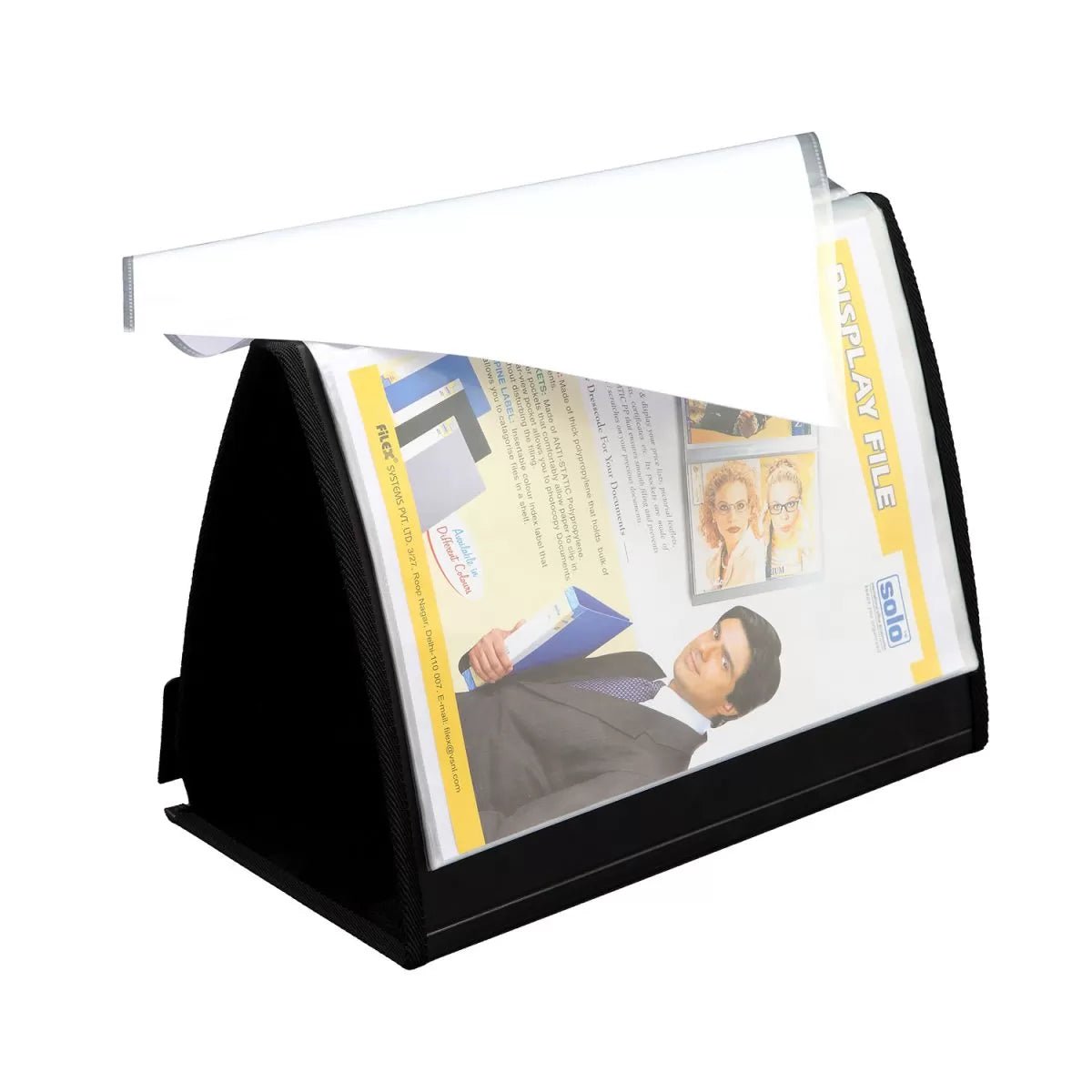 Solo is a pioneer in the manufacture of office supplies and is popular among both students and young professionals for its varied range of products. The Solo Rollover Show File is an A4 Size Compatible File, which can be kept on the tabletop to display its contents. This landscape file has 20 Clear-View Side Loading Thick Pockets and a Special Velcro Closure with Extended Flaps. You can place it on the desktop and flip it to display the contents to the viewer. It proves to be a handy tool for Sales Personnel requiring visual and pictorial communication.