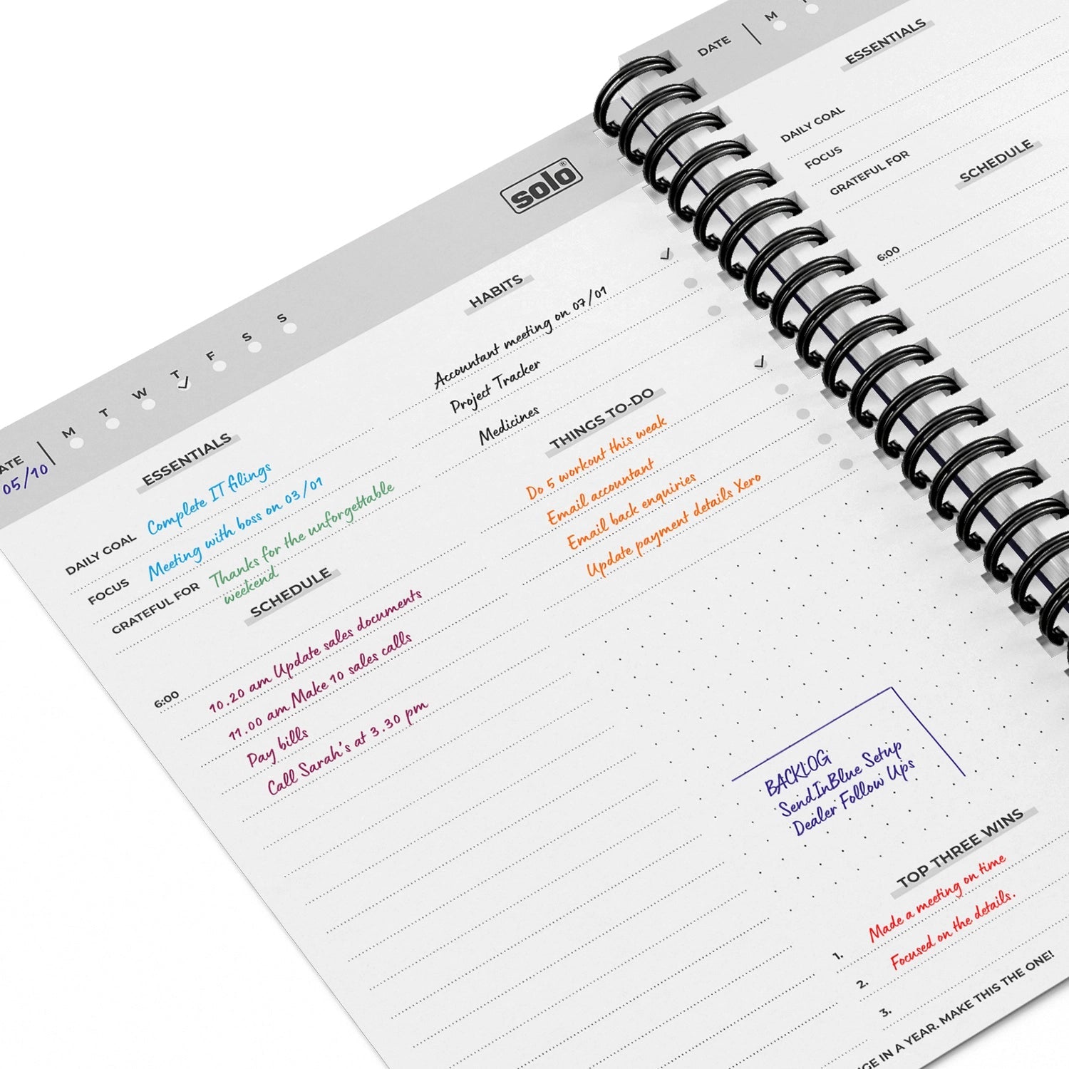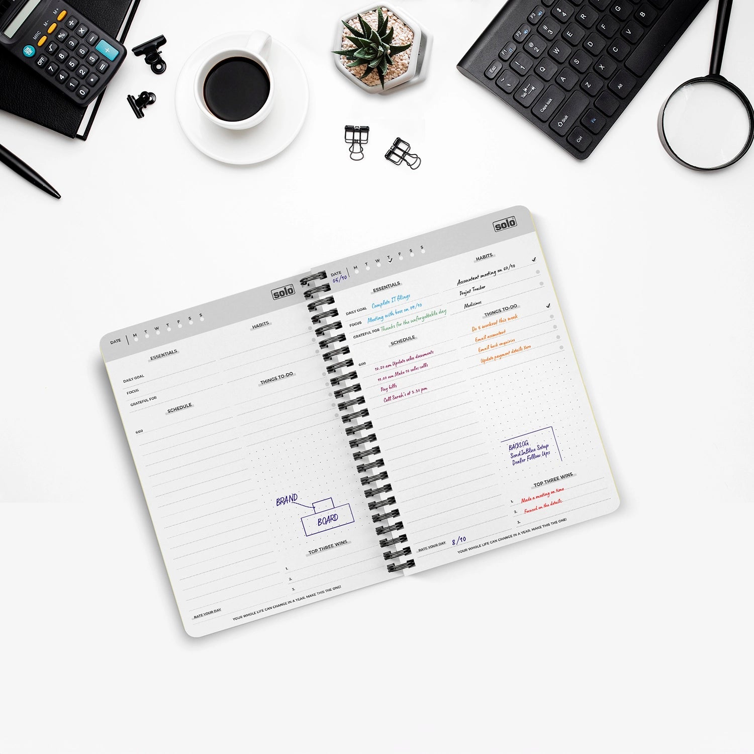 • PLAN EACH DAY - No more tasks left unfinished! Keep a record of everything through a daily schedule and a separate important section for health and diet. make adjustments to all of your personal and professional Goals