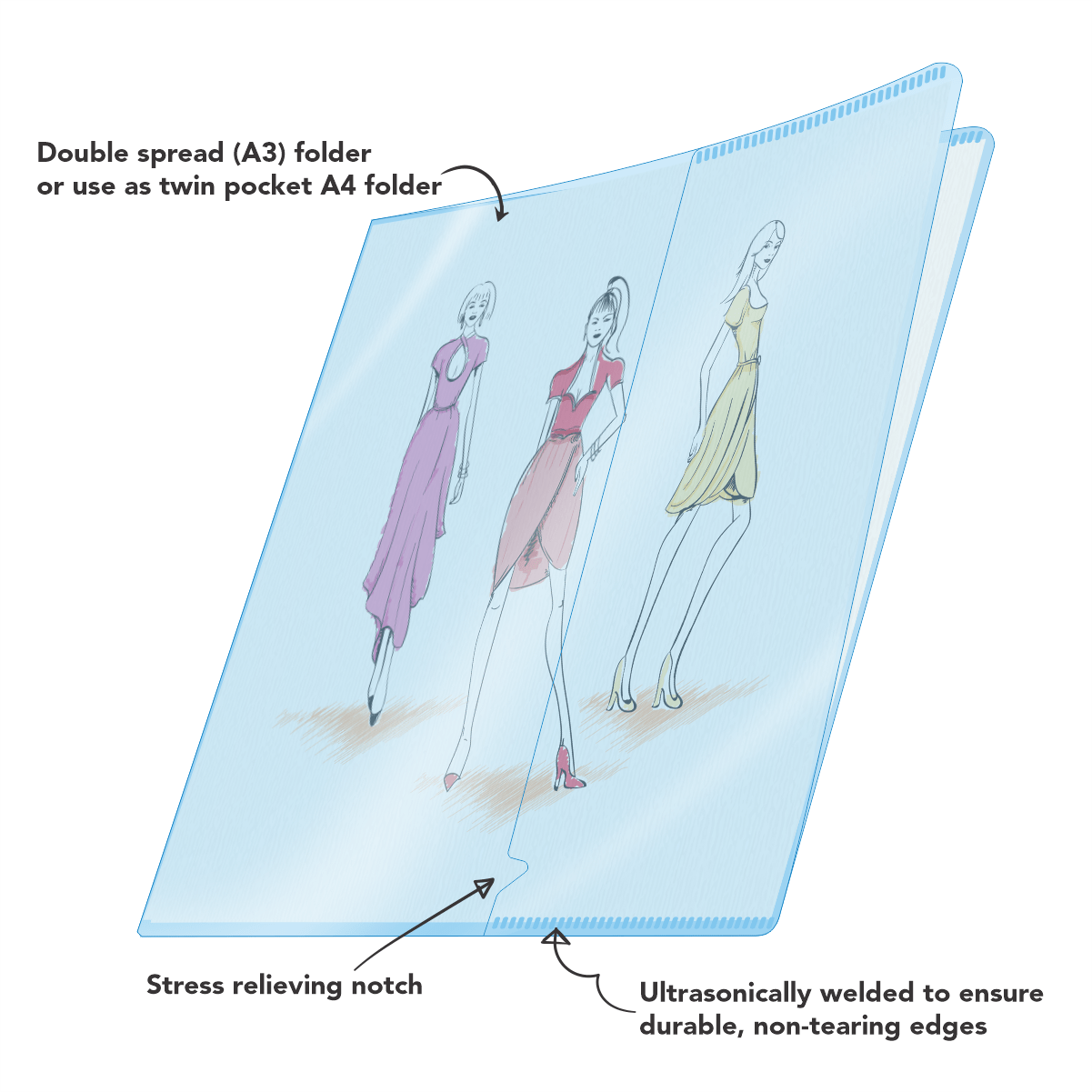• Ultrasonic welding to enhance the durability of the folder.
