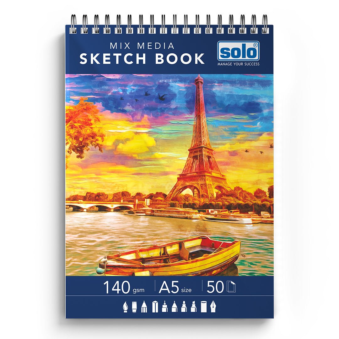 Mixed Media Sketchbook, A5, (Pack of 4) 50 Sheets, 140 GSM – Portrait