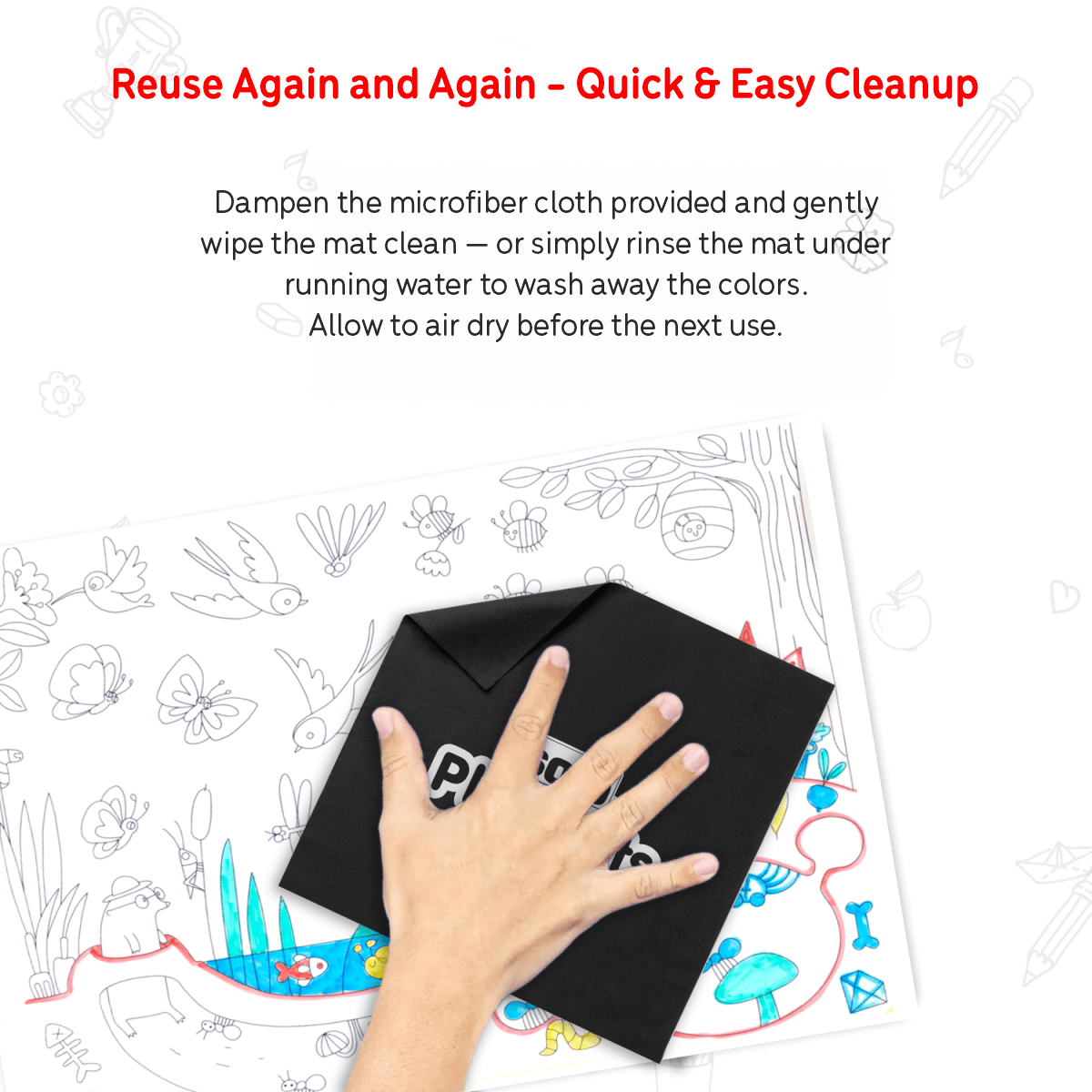 ✅ Reusable & Easy to Clean – Designed for mess-free play, each mat wipes clean effortlessly with a damp cloth or under running water. Kids can color, erase, and reuse—again and again—without paper waste.